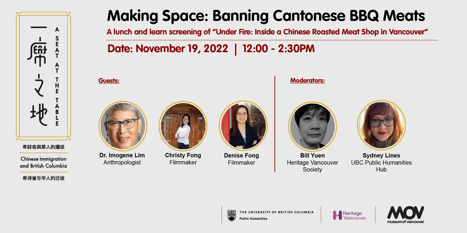 - Dr. Imogene Lim was interviewed by Stephen Quinn, host of CBC's The Early Edition, to promote a Lunch & Learn event, Making Space: Banning BBQ Meats, at the Museum of Vancouver, November 19, 2022.