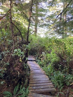 The field course in September is an immersive learning experience over 5 days (not including travel to and from the meetup location). The field course includes field trips and guest talks by Indigenous leaders, Elders, and knowledge holders. The field course typically takes place at the Clayoquot Campus in Tla-o-qui-aht Tribal Parks (Tla-o-qui-aht territory/Tofino, B.C.) on the west coast of Vancouver Island.